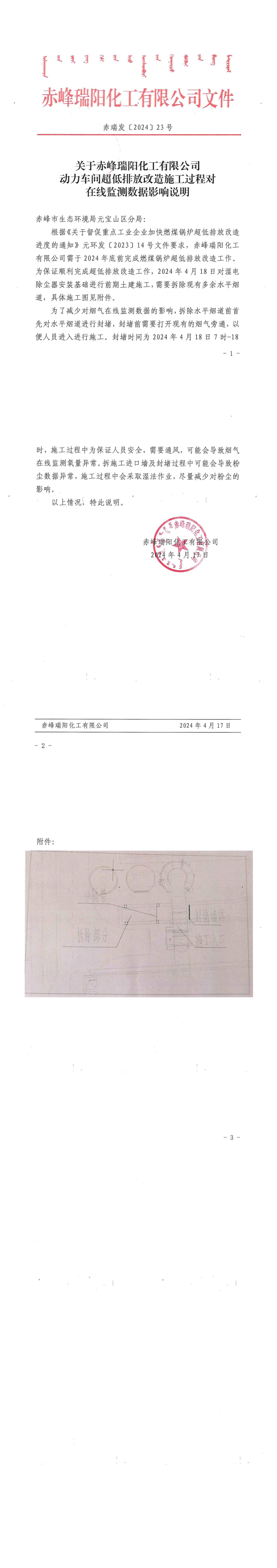 赤瑞發(fā)〔2024〕23號(hào):動(dòng)力車間超低排放改造施工過(guò)程對(duì)在線監(jiān)測(cè)數(shù)據(jù)影響說(shuō)明
