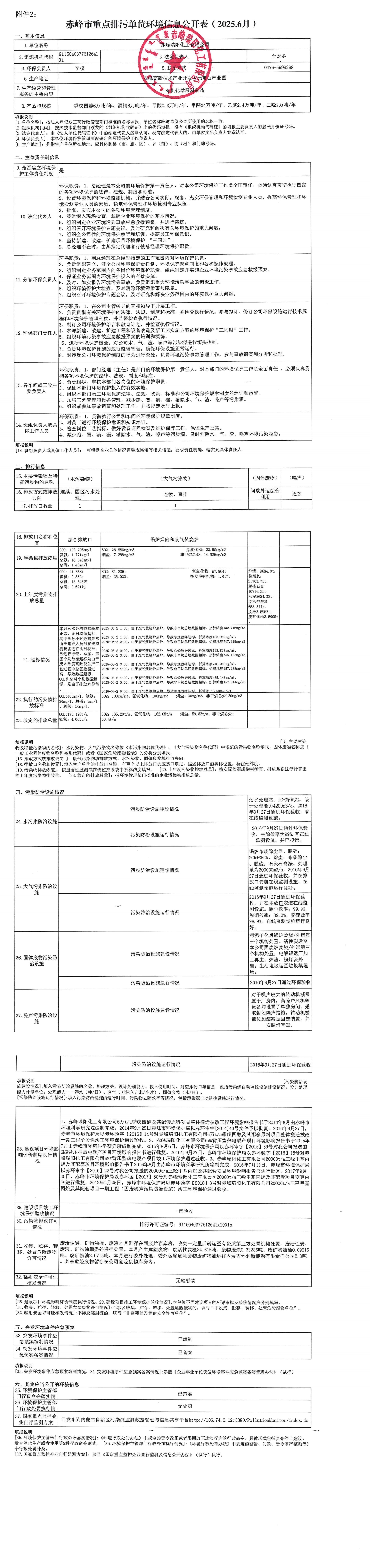 赤峰市重點(diǎn)排污單位環(huán)境信息公開(kāi)表【2025.06】